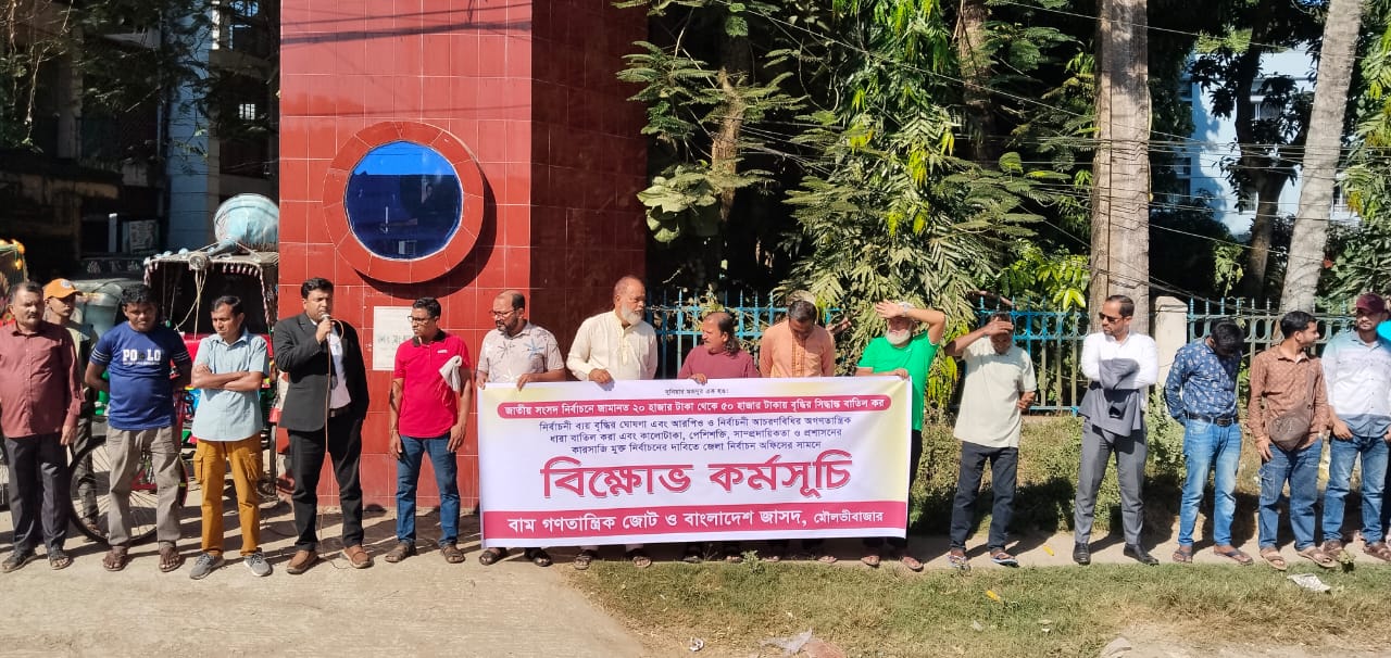 মৌলভীবাজার জেলা নির্বাচন অফিসের সামনে বাম গণতান্ত্রিক জোট ও বাংলাদেশ জাসদের বিক্ষোভ