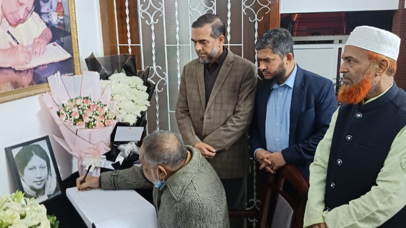 খালেদা জিয়ার প্রতি জামায়াত নেতাদের শ্রদ্ধা, শোক বইয়ে স্বাক্ষর ডা. তাহেরের